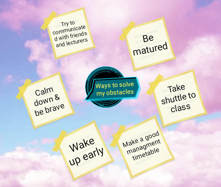 There are academic goals and personal goals.To achieve our goals there’s always have an obstacle that I need to faced and there’s always have a ways for me to take an action to fight the obstacles.
